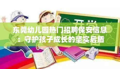 东莞幼儿园热门招聘保安信息:守护孩子成长的坚实后盾