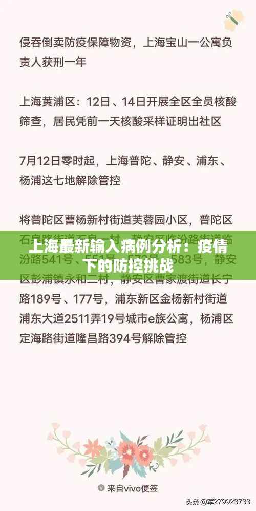 随着全球疫情的不断演变,我国疫情防控形势依然严峻。近日,上海再次出现输入病例,引发了广泛关注。本文将对上海最新输入病例进行详细分析,探讨疫情下的防控挑战。