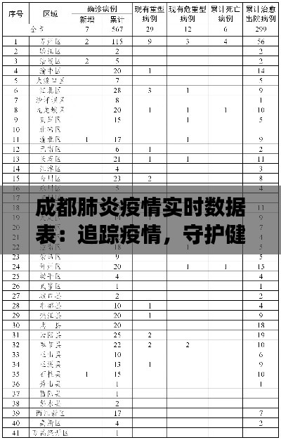 标题:成都肺炎疫情实时数据表:追踪疫情,守护健康