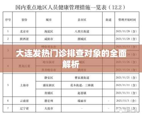 随着新冠疫情的持续蔓延,我国各地纷纷加强了疫情防控措施。大连作为我国重要的港口城市,也积极响应国家号召,加强了对发热门诊的排查工作。本文将全面解析大连发热门诊的排查对象,帮助大家了解相关政策和措施。