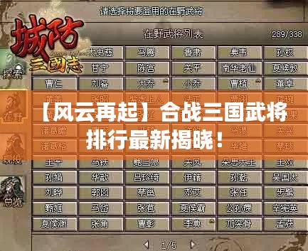 合战三国武将排行最新揭晓,让我们看到了那些英雄豪杰的风采。在这个充满激情的游戏世界里,让我们一起追寻那些传奇故事,感受三国时期的英雄气概!