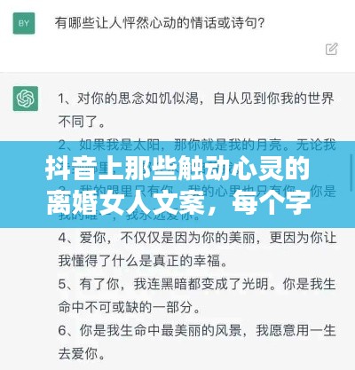 标题:抖音上那些触动心灵的离婚女人文案,每个字都戳心!