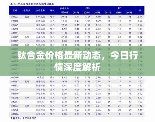 随着科技的不断进步和制造业的飞速发展,钛合金作为一种重要的金属材料,其需求日益增加,本文将对钛合金的最新行情,特别是今日的价格走势进行分析。