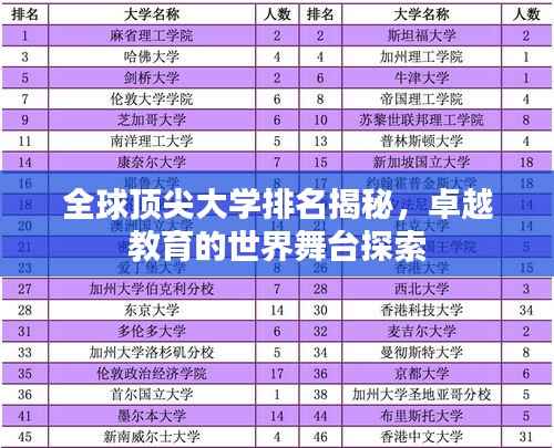 在全球化的今天,越来越多的人选择追求高等教育,以拓宽视野,提升技能,而世界排名靠前的大学,无疑是众多学子梦寐以求的教育殿堂,这些学府以其卓越的教学质量、科研实力和全球影响力,成为引领全球教育发展的标杆,本文将带您一起探索世界排名靠前的大学,揭示其成功的秘诀。
