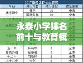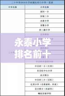 在永泰地区,小学教育的发展一直备受关注,随着社会进步和教育的普及,家长们对孩子的教育越来越重视,小学的教学质量、师资力量、教育资源等因素成为家长们选择学校的重要参考,本文将介绍永泰地区小学排名前十名,以便家长们更好地了解这些学校。