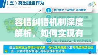 制定好策略后,执行力度是落实容错纠错的决定性因素,我们需要建立完善的执行机制,确保各项策略能够得到有效执行,这包括明确责任分工、建立监督机制、定期评估执行效果等,还需要对执行人员进行培训,提高他们的专业技能和执行力,确保容错纠错机制的有效实施。