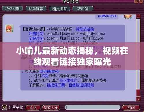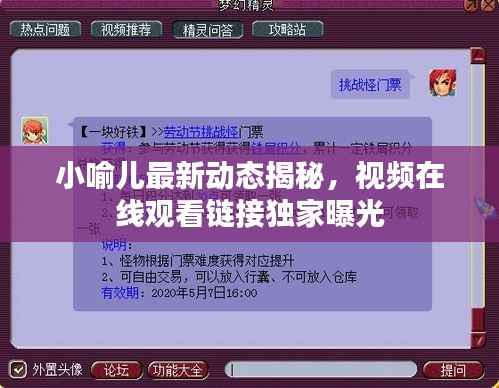 备受关注的小喻儿有了最新的消息,其相关视频已经发布,引发了广大粉丝和网友的热烈讨论和关注,如果你也是小喻儿的粉丝,那么一定不想错过关于他的任何最新动态,本文将为你提供小喻儿最新消息视频的在线观看方式,让你第一时间了解他的最新情况。