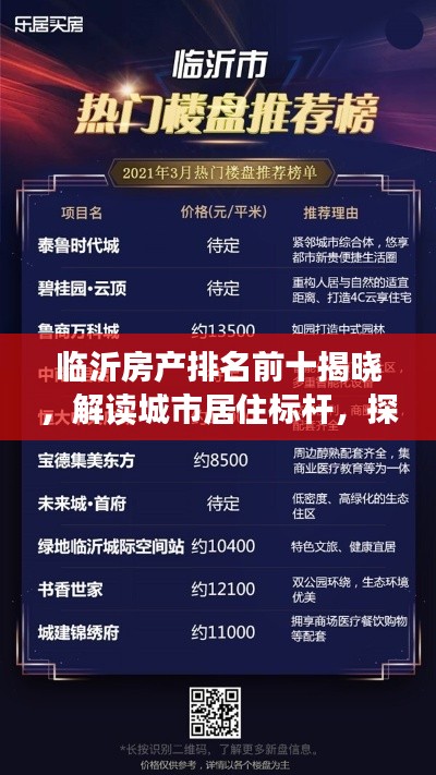 随着城市化进程的加速,临沂作为山东省的重要城市,其房地产市场日益繁荣,在这片热土上,许多优质的房产项目以其卓越的品质、地理位置和人性化设计赢得了广大购房者的青睐,本文为您揭晓临沂房产排名前十名,带您领略这座城市居住标杆的魅力。