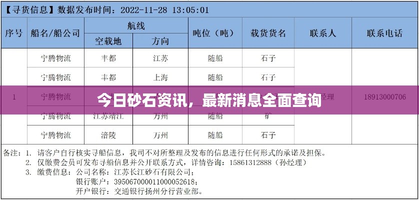 今日砂石资讯,最新消息全面查询