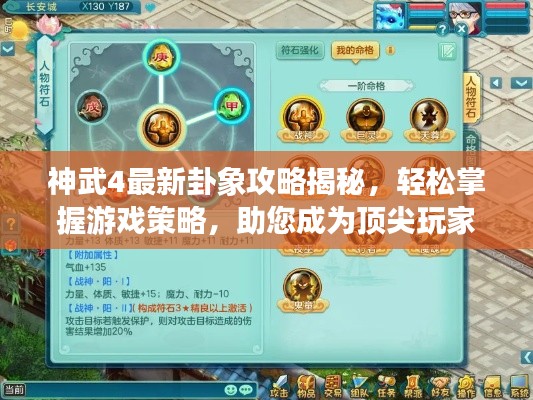 随着神武4的热度持续升温,越来越多的玩家投身于这个奇幻的世界,为了帮助大家更好地掌握游戏技巧,本文为您带来最新的卦象攻略视频解析,助您轻松成为顶尖玩家。