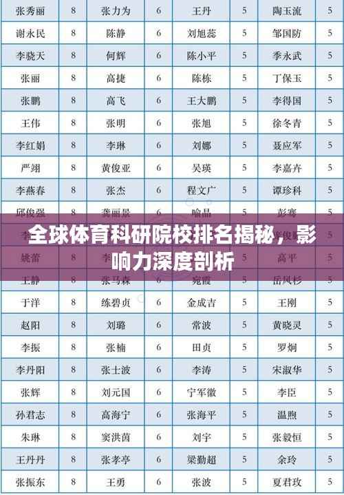 体育科研是推动全球体育事业持续发展的重要动力,在此背景下,世界各地的体育科研院校纷纷崭露头角,以其卓越的科研成果和教学质量引领体育科研的潮流,本文将探讨全球体育科研院校排名及其影响力。