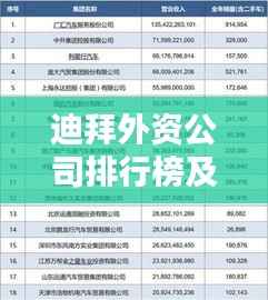 迪拜,这座充满活力和机遇的城市,一直是全球投资者和企业家的焦点,其优越的商业环境、丰富的资源以及开放的外资政策,吸引了众多外资公司前来设立总部或分支机构,本文将探讨迪拜外资公司的排名及其影响力。