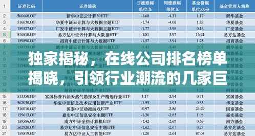 随着市场竞争的加剧,各大在线公司都在努力提升自身实力,以赢得更多用户的信任和支持,目前,行业内排名靠前的几家在线公司包括: