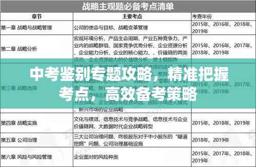 中考是每个初中生都会面临的重要考试,对于考生来说,精准把握考点,高效备考至关重要,本文将围绕“中考鉴别专题”展开,帮助考生了解中考鉴别专题的特点、方法和技巧,以便更好地备考。