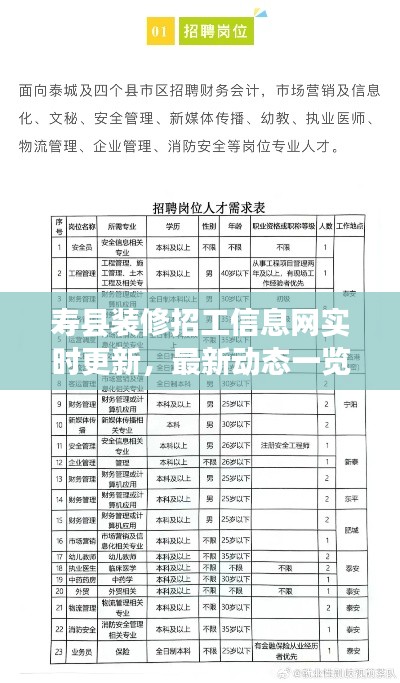 为了更准确地了解寿县装修招工信息网的最新动态,我们可以通过以下几个方面进行介绍: