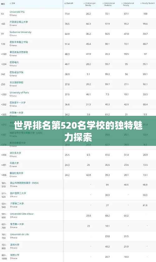 在浩如烟海的教育领域中,每一所学校都拥有其独特的魅力和特色,我们将聚焦于世界排名第520名的学校,探索这所学校的独特之处,以及其如何在全球范围内展现其卓越的教育实力。