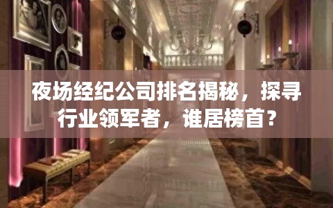 在当今社会,夜场文化日益繁荣,夜场经纪公司也应运而生,为大众提供丰富多彩的夜生活体验,本文将探讨夜场经纪公司的排名,带您了解这一行业的领军者。