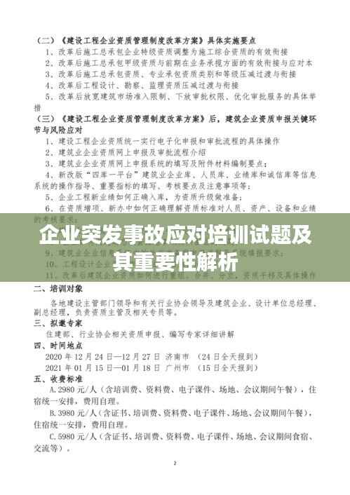 在当今社会,企业面临着各种各样的风险和挑战,其中突发事故是最需要关注和防范的,突发事故不仅可能导致企业财产损失,还可能对员工生命安全构成威胁,为了增强企业员工的安全意识和应对突发事故的能力,开展相关的培训试题研究至关重要,本文将围绕“企业突发事故培训试题”这一主题展开讨论。
