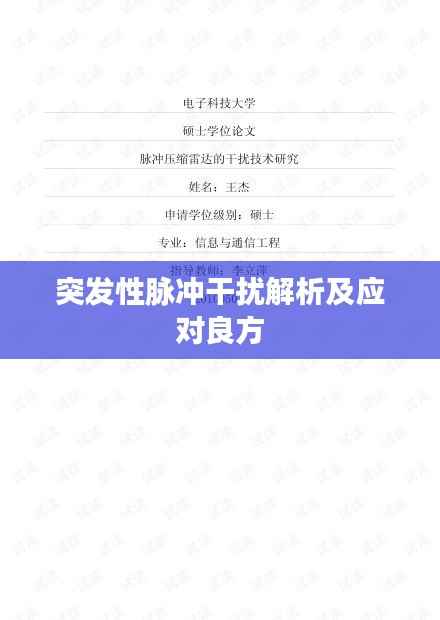 面对突发性脉冲干扰,我们需要从预防、检测和消除三个方面进行应对。