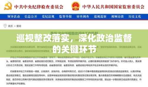 巡视整改落实是深化政治监督的重要一环,对于加强党的建设、推进全面从严治党具有重大意义,当前,巡视整改工作虽取得一定成效,但仍面临一些问题和挑战,我们需要提高政治站位,强化责任担当;加强制度建设,完善工作机制;强化监督检查,形成监督合力;深化标本兼治,注重长效机制建设;加强宣传教育,营造良好氛围,只有这样,才能有效推进巡视整改工作,为党的建设和国家治理体系提供有力保障。