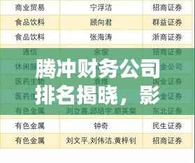 随着经济的发展和社会的进步,财务公司在各个城市中扮演着越来越重要的角色,腾冲市作为一个经济活跃的地区,其财务公司的数量和服务质量也备受关注,本文将探讨腾冲财务公司的排名及其影响力。