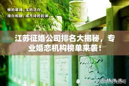 江苏,这片富饶的土地上,自古以来才子佳人辈出,婚姻之事历来受到人们的重视,随着时代的发展,征婚公司如雨后春笋般涌现,本文将为您揭晓江苏征婚公司的排名,带您了解这些公司的特色与优势。
