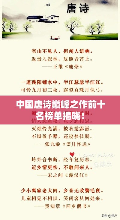 唐诗,作为中国古代文学的瑰宝,为我们留下了丰富的文化遗产,一些诗篇因其卓越的文学价值和深远的影响力而脱颖而出,以下是笔者心中的中国唐诗前十名排名,这些诗作在韵律、意境、情感等方面都有着独特的魅力。