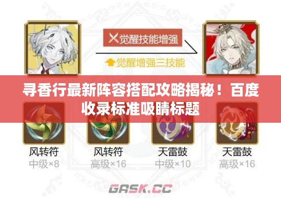 寻香行作为一款策略性游戏,阵容搭配至关重要,在游戏中,玩家需要根据自己的需求和对手的情况来调整阵容,以达到最佳效果,本文将为你介绍最新的阵容搭配攻略,帮助你更好地掌握游戏技巧,提升战斗力。