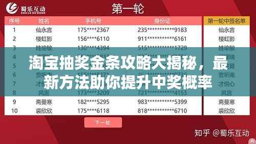 随着互联网的发展,越来越多的人喜欢在淘宝购物,而淘宝抽奖活动也备受关注,抽奖金条作为一种常见的抽奖方式,吸引了大量用户的参与,本文将为大家分享一些最新的淘宝抽奖金条攻略,帮助大家提高中奖概率,获取心仪的奖品。