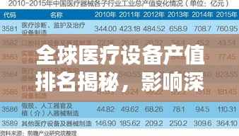 随着全球医疗技术的不断进步,医疗设备产业已成为全球经济发展的重要推动力,本文将对世界医疗设备产值排名进行深入研究,分析全球医疗设备市场的现状、发展趋势以及主要参与者的表现。