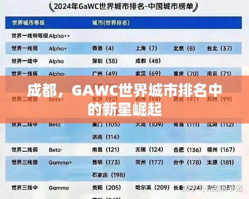 成都在GAWC世界城市排名中的崛起,展示了其独特的魅力和强大的实力,成都将继续发挥其优势,抓住机遇,迎接挑战,成为世界重要的中心城市之一,让我们共同期待成都在世界城市排名中的更高成就,为全球的繁荣与发展做出更大贡献。