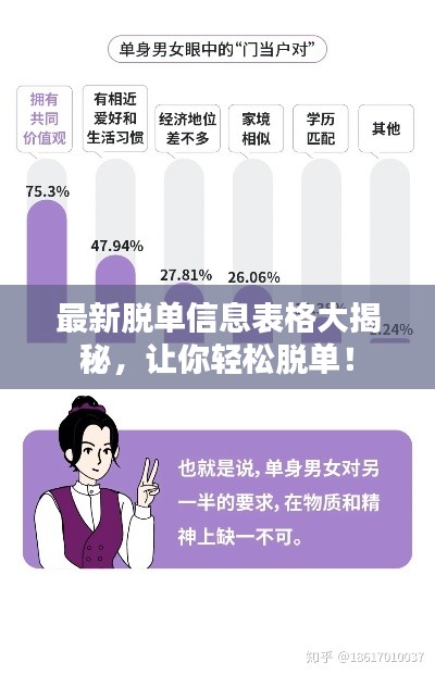 随着社交媒体的普及和人们生活节奏的加快,越来越多的人开始关注自己的情感生活,脱单成为了很多人的心愿,而寻找合适的伴侣则成为了实现这一心愿的关键,为了帮助大家更好地了解最新的脱单信息,我们特别整理了一份今日最新脱单信息表格,以便大家快速浏览和查找心仪的伴侣。