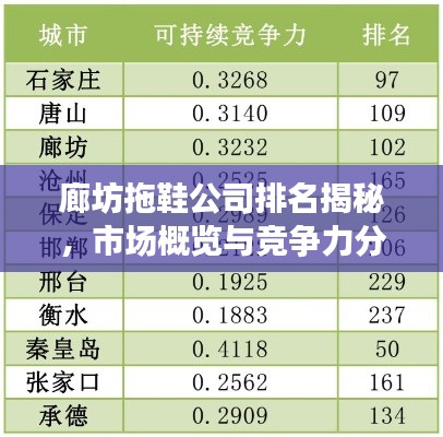 拖鞋市场在中国乃至全球都有着不可忽视的地位,尤其在炎热的夏季,拖鞋成为消费者日常生活中的必需品,廊坊作为中国的拖鞋产业重要基地之一,拥有众多的拖鞋公司,它们各具特色,产品质量各异,本文将为您介绍廊坊的拖鞋公司排名及相关情况。