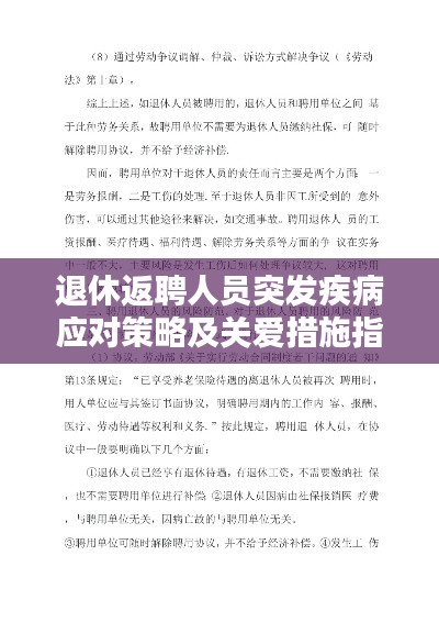面对退休返聘人员突发疾病的情况,我们需要从多个层面进行应对和关爱,企业应建立完善的健康管理制度,制定应急预案,提供必要的医疗保障和心理健康支持,政府和社会各界也应关注这一群体,为他们创造良好的工作和生活环境,只有这样,我们才能更好地发挥退休返聘人员的作用,为社会做出更大的贡献。