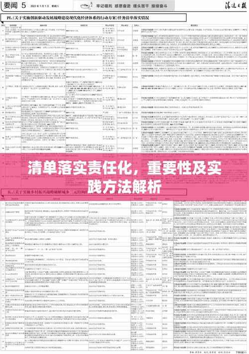 在当今社会,高效管理和有效执行已经成为各行各业共同追求的目标,尤其在各类项目和工作中,责任落实成为确保任务顺利完成的关键环节,为此,“清单落实责任化”作为一种高效的管理手段,正受到越来越多的关注和重视,本文旨在探讨清单落实责任化的重要性,以及如何在实际工作中有效实施。