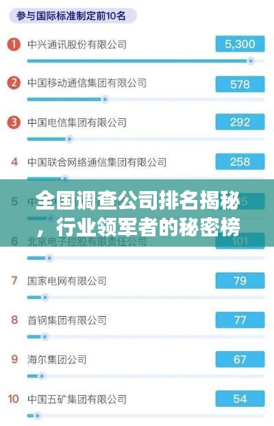 随着市场研究的日益重要,调查公司在各行各业中发挥着举足轻重的作用,这些公司通过收集和分析数据,为客户提供宝贵的市场洞察力和建议,在全国众多的调查公司中,哪些公司表现出色,位居行业前列呢?本文将为您揭示全国调查公司的排名及其成功的秘诀。