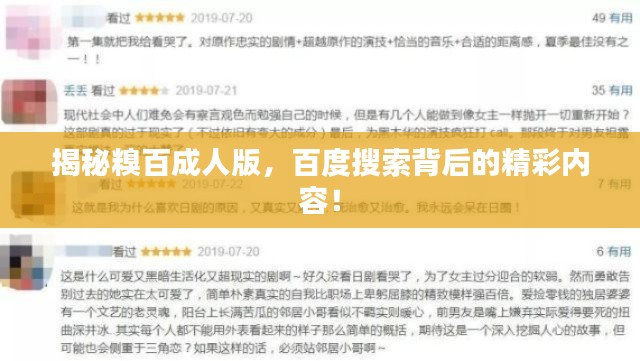“糗百”一般是指糗事百科,是一个以娱乐为主的社区,而“成人版”则可能涉及到一些适合成年人群的娱乐内容,当这两个词汇结合时,可能引发用户的好奇心和探索欲望。