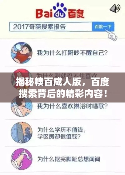“百度一下糗百成人版”这个关键词提醒我们要善于利用搜索引擎,注重信息安全,保持健康的生活态度,希望这篇文章能给大家带来一些启示,让我们共同营造一个健康的网络环境。