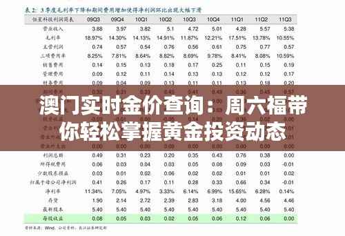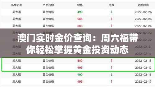 标题:澳门实时金价查询:周六福带你轻松掌握黄金投资动态