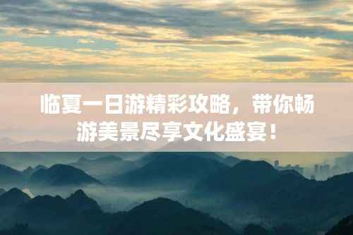 临夏是一个充满魅力的城市,拥有丰富的历史文化和美丽的风景,通过这一天的行程,你一定能够深入了解这座城市的魅力,希望这篇临夏一日游攻略能对你的旅行有所帮助,祝你在临夏度过美好的一天!