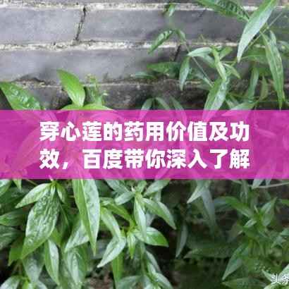 穿心莲,一种充满神秘色彩的植物,被广泛应用于中医领域,当我们提及穿心莲时,不禁让人联想到其独特的药用价值及在中医领域的应用,关于穿心莲的更多知识,我们可以从百度中寻找到答案。