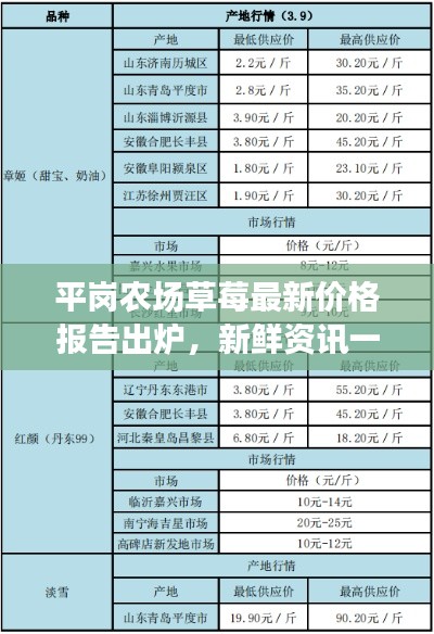 经过查询,我们得到平岗农场草莓的最新价格信息,目前,平岗农场草莓的价格因季节、品种、市场需求等因素而有所差异,草莓价格一般在每公斤XX元至XX元之间,消费者可以通过当地农贸市场、超市、电商平台等渠道了解实时价格。