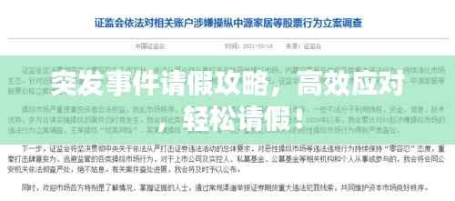 突发事件,如突如其来的疾病、家庭紧急情况或其他不可预见的情况,常常需要我们临时请假,在这种情况下,如何有效地请假并尽可能地减少对工作或学习的影响,是一门重要的技能,下面将为大家介绍一些关于突发事件如何请假的建议。