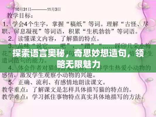 “突发奇造句”是一种神奇的体验,它让我们感受到语言的无限魅力,在这个充满可能性的世界里,让我们善于观察,敢于尝试,积累语言,用奇妙的句子点亮我们的生活,丰富我们的表达,因为每一个奇妙的句子,都是我们对世界的独特理解,都是我们的创造力与智慧的结晶,让我们一同探索“突发奇造句”的无限魅力,享受语言带来的乐趣吧!