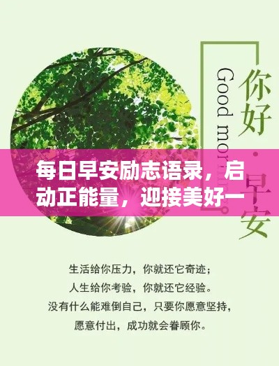 每天一句励志语录,激励我们不断前行,让我们在新的一天里,拥抱阳光,追逐梦想,勇往直前,无论遇到多少困难与挑战,都要相信自己,因为你有无限可能,新的一天,新的开始,让我们一起努力,共创美好未来!