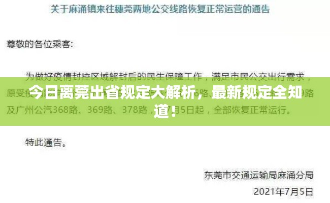 随着疫情防控形势的不断变化,各地政府为了保障人民群众的健康安全,纷纷出台了一系列防疫措施,针对广大市民关注的离莞出省问题,以下是关于今日离莞出省的最新规定。
