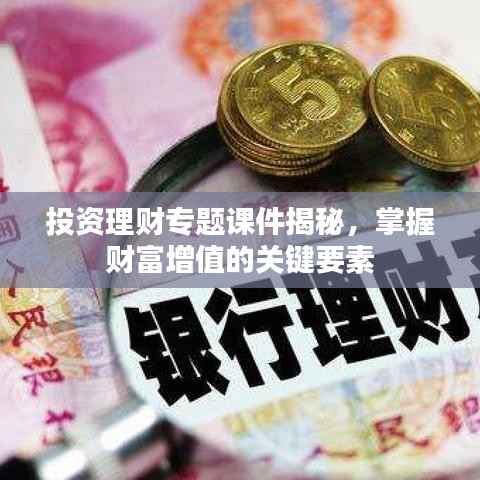 随着经济的发展和社会的进步,投资理财已成为人们日常生活中不可或缺的一部分,越来越多的人开始关注如何有效地管理和增值自己的财富,投资理财教育的需求也日益增长,本文将围绕“投资理财专题课件”这一主题,介绍投资理财的基本概念、策略、风险及如何构建个性化的投资组合理财专题课件,帮助读者更好地掌握财富增长的关键要素。