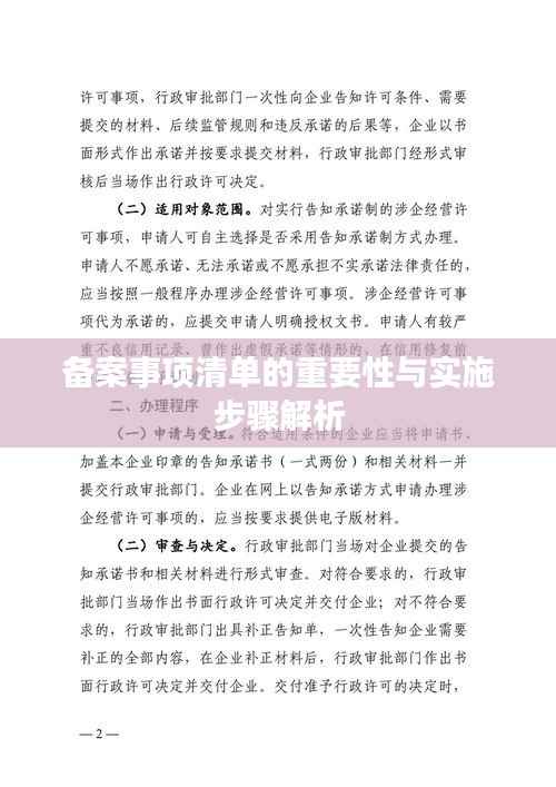 在当今社会,随着法治建设的不断完善,各类备案事项清单在各行各业中扮演着越来越重要的角色,落实备案事项清单不仅有助于规范行业管理,提高工作效率,还能保障公众权益,促进社会的和谐稳定,本文将从多个角度阐述落实备案事项清单的重要性,并探讨实际操作中的关键步骤和注意事项。