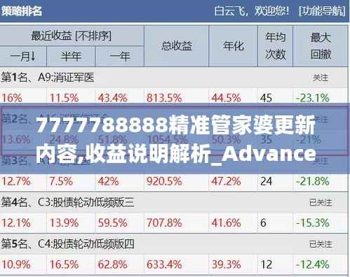 以上就是我们对7777788888精准管家婆更新内容的详细解析,以及“收益说明解析_Advanced8.290”功能的简要介绍。我们深信,通过这款强大的软件,您将能够更好地理解澳门的政策环境,把握投资机遇,并实现财富增长。我们期待与您一起迎接澳门地区的美好未来!