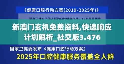 澳门特别行政区一直在积极推动政策创新,以适应不断变化的社会和经济环境。最近推出的一项重大政策更新,即“新澳门玄机免费资料,快速响应计划解析_社交版3.476”,旨在加强信息共享、提高政策透明度,并促进公众互动。这项政策不仅涵盖了经济、社会和可持续发展等方面的内容,还特别强调了信息免费获取的重要性,以确保公众能够及时获取关于澳门未来发展的准确信息。